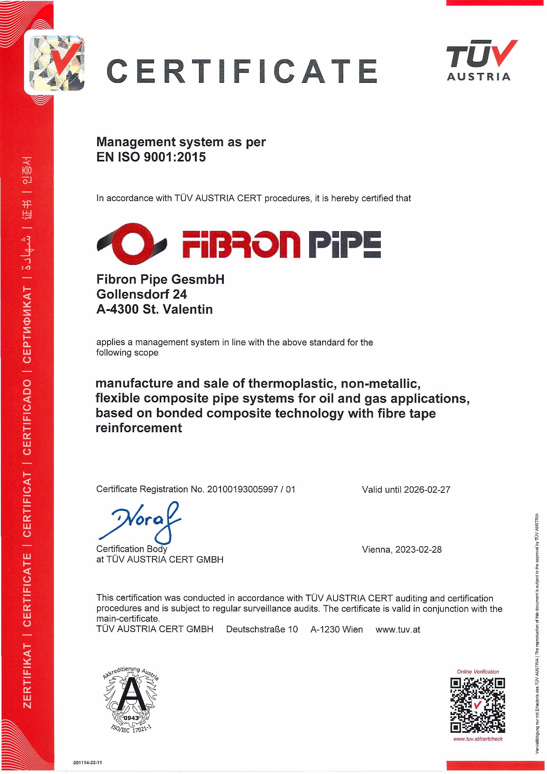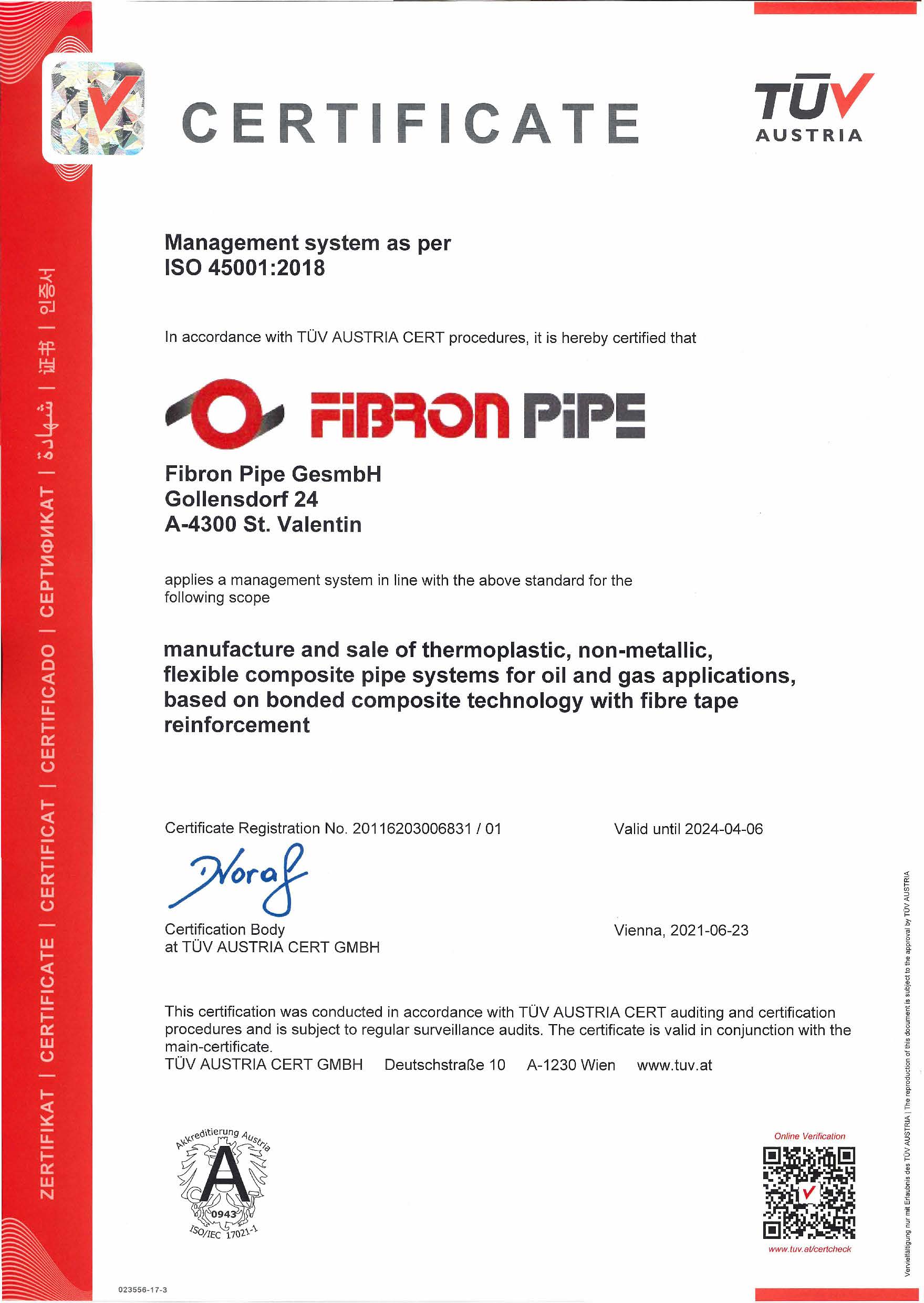 Constant improvement and further development are important to us. FibronPipe is certified according to the highest international standards, demonstrating our commitment to quality, environmental responsibility, and occupational health and safety.