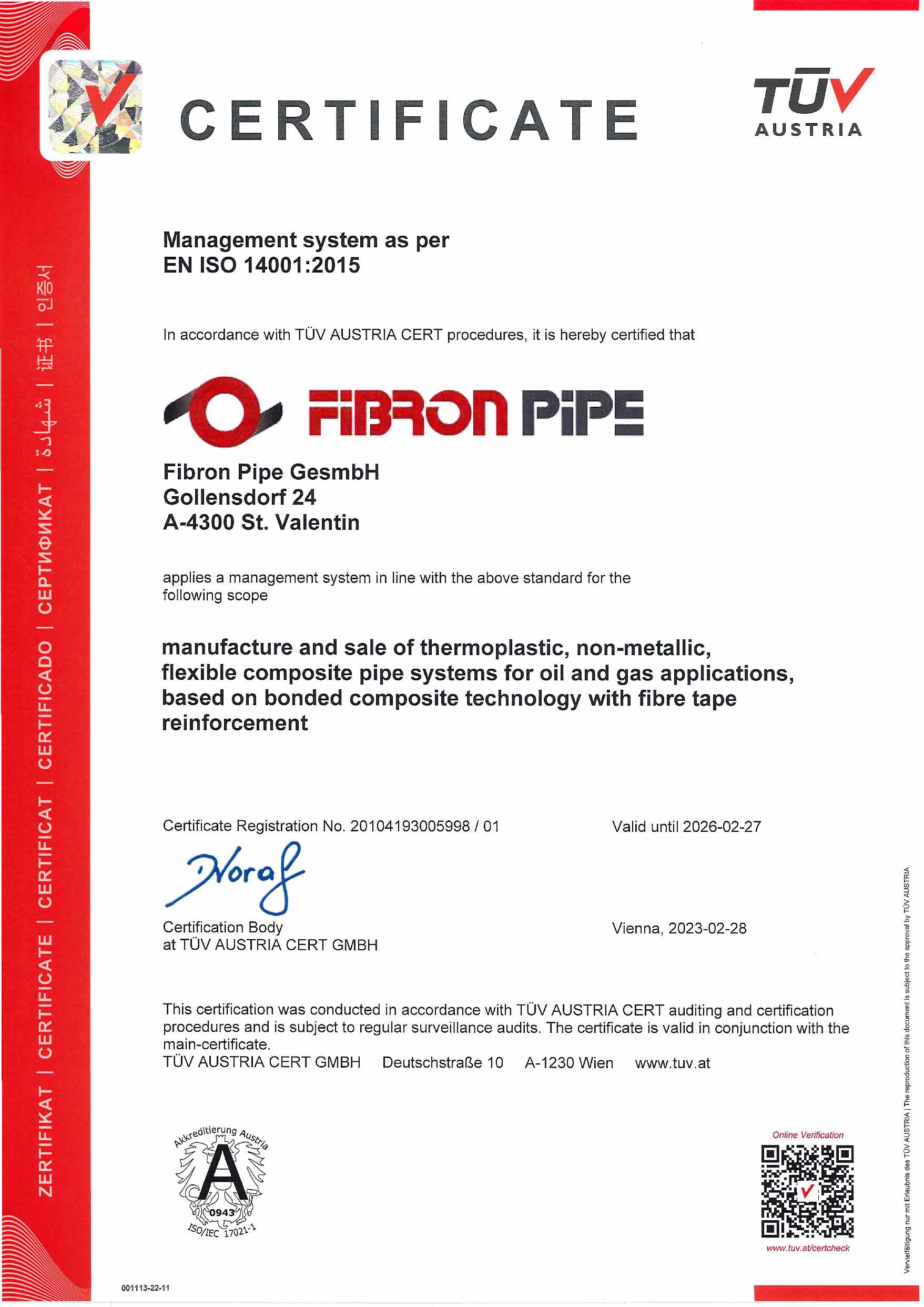 Постоянное совершенствование и дальнейшее развитие важны для нас. FibronPipe сертифицирована в соответствии с высочайшими международными стандартами, демонстрируя нашу приверженность качеству, экологической ответственности и охране труда.